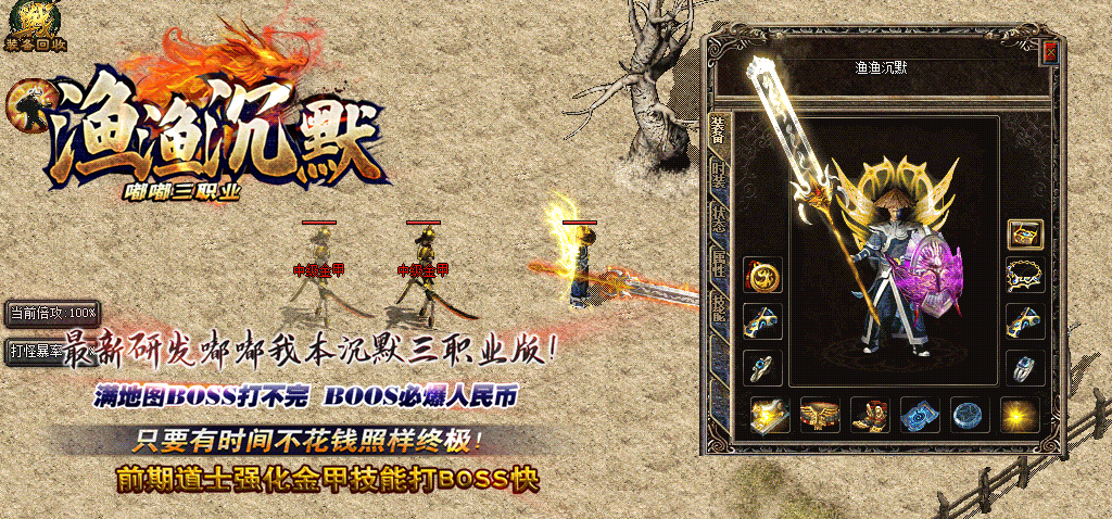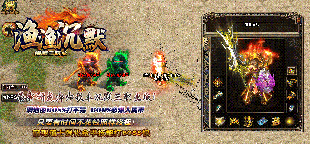 全新技能强化系统★道士召唤金甲强化后后超强,可以带两个金甲★前期建议玩道士★打大小魔王超快★